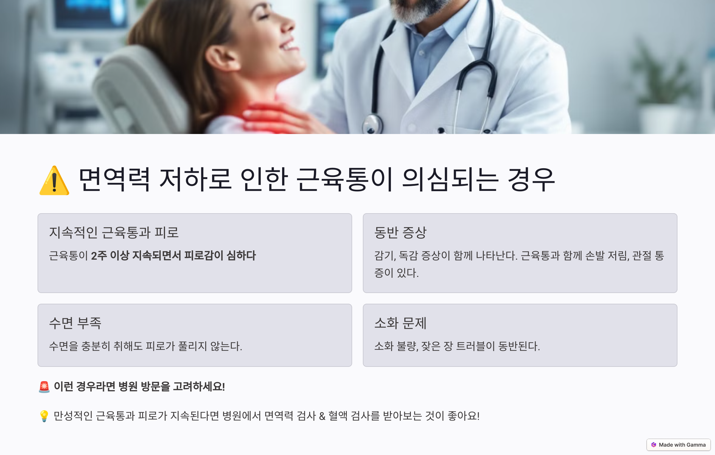 ⚠ 면역력 저하로 인한 근육통이 의심되는 경우