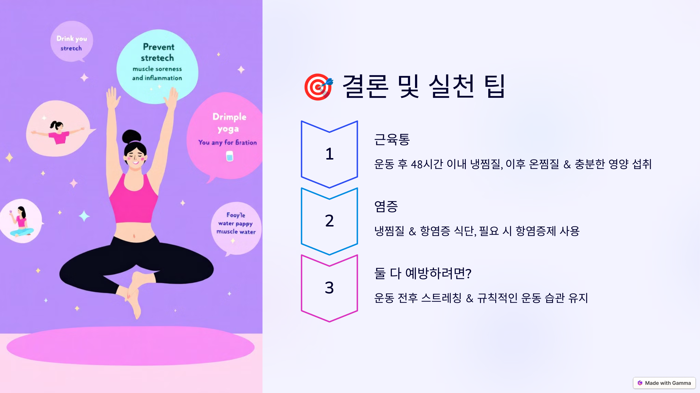 ✅ 둘 다 예방하려면?: 운동 전후 스트레칭 & 규칙적인 운동 습관 유지💬 여러분은 근육통과 염증을 어떻게 관리하고 계신가요? 효과적인 방법이 있다면 댓글로 공유해 주세요! 😊