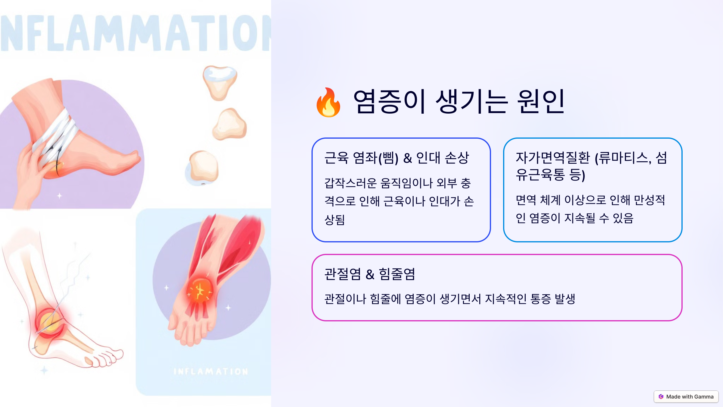 염증은 단순한 피로가 아니라 근육이나 관절이 손상되면서 발생하는 반응이에요.