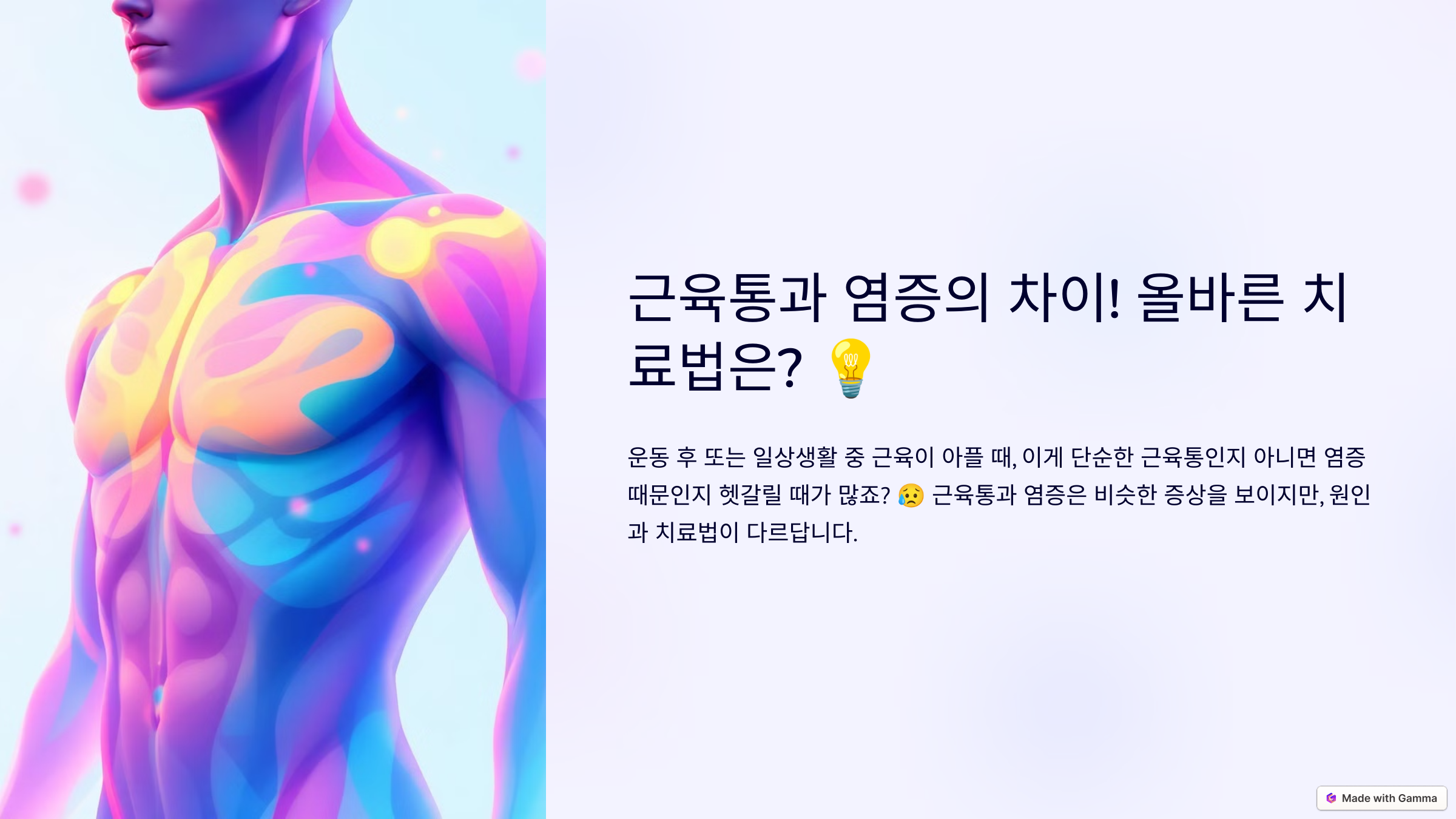 운동 후 또는 일상생활 중 근육이 아플 때, 이게 단순한 근육통인지 아니면 염증 때문인지 헷갈릴 때가 많죠? 😥