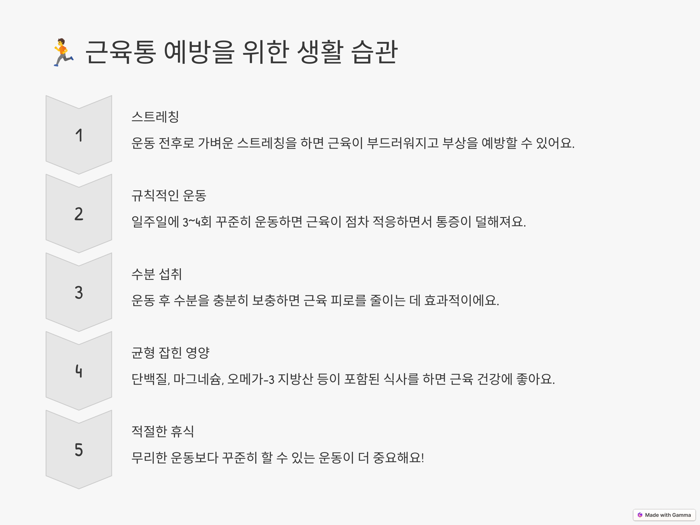 근육통을 예방하려면 평소 생활 습관을 잘 관리하는 것이 중요해요.