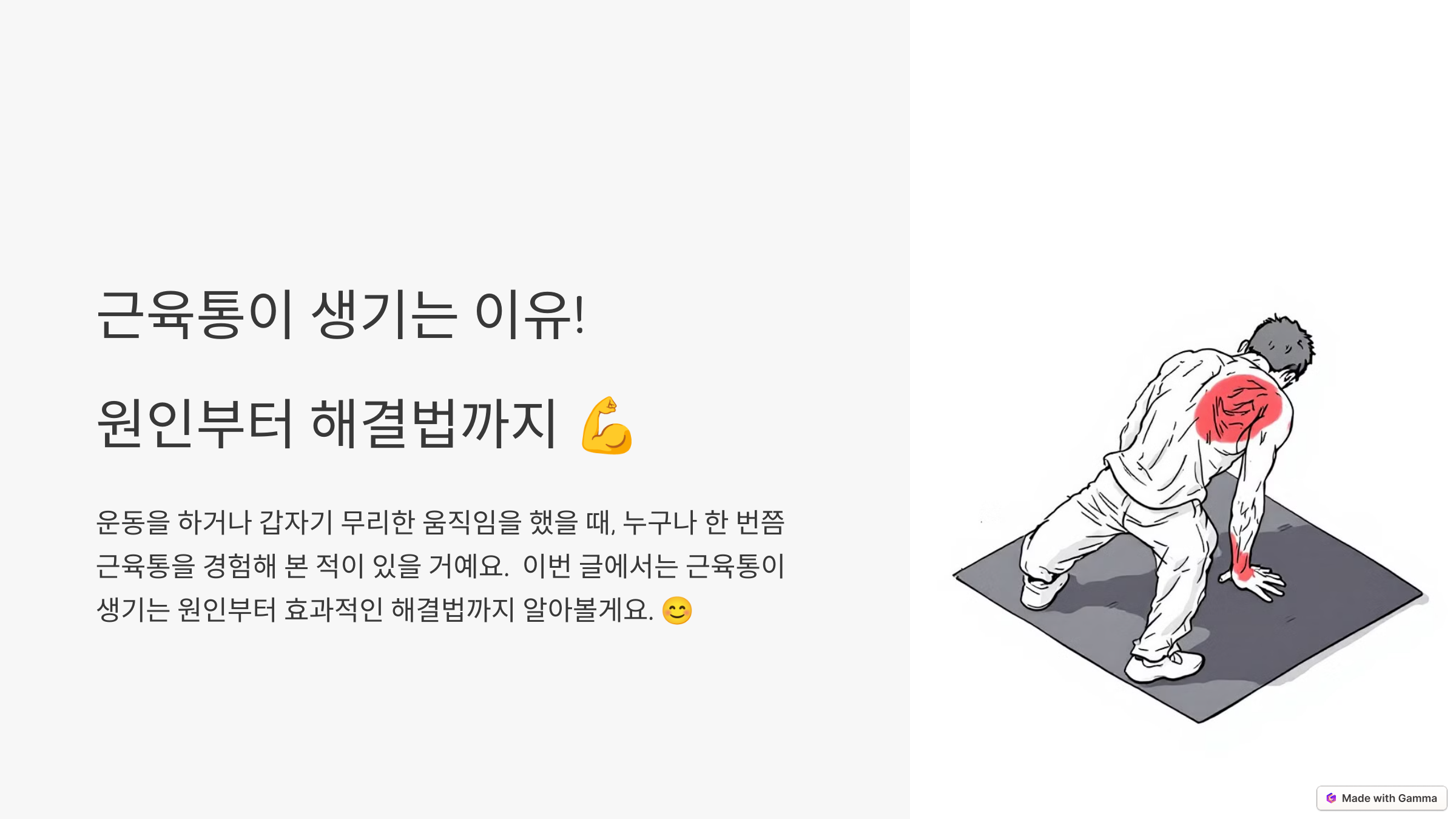 운동을 하거나 갑자기 무리한 움직임을 했을 때, 누구나 한 번쯤 근육통을 경험해 본 적이 있을 거예요. 근육통은 단순한 통증일 수도 있지만, 원인을 정확히 알고 적절한 방법으로 해결해야 더 건강한 몸을 유지할 수 있답니다! 이번 글에서는 근육통이 생기는 원인부터 효과적인 해결법까지 알아볼게요. 😊