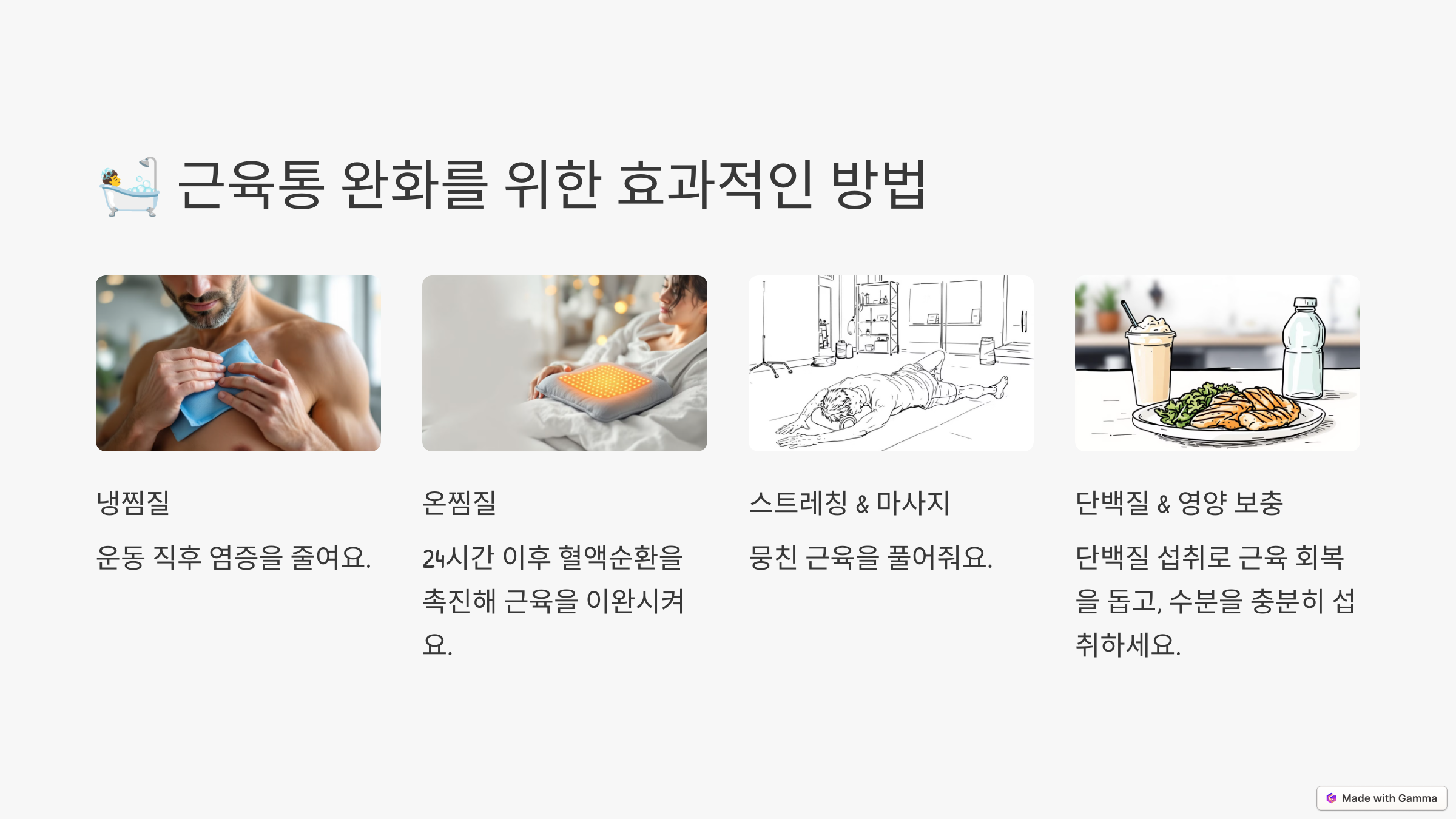 근육통을 빠르게 줄이려면 다음과 같은 방법을 활용해 보세요!