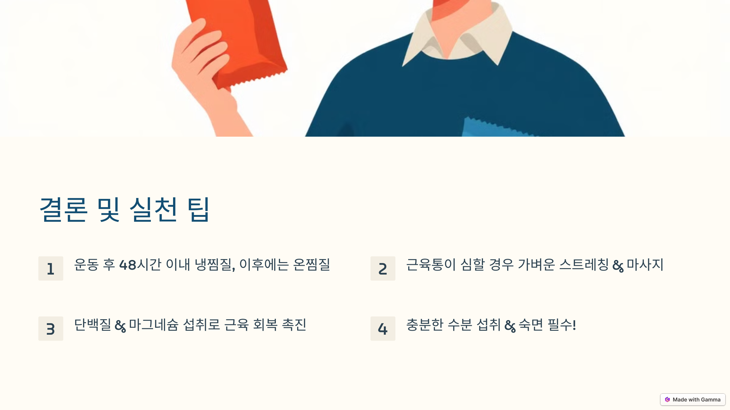 - 근육통 회복을 돕는 추가적인 방법