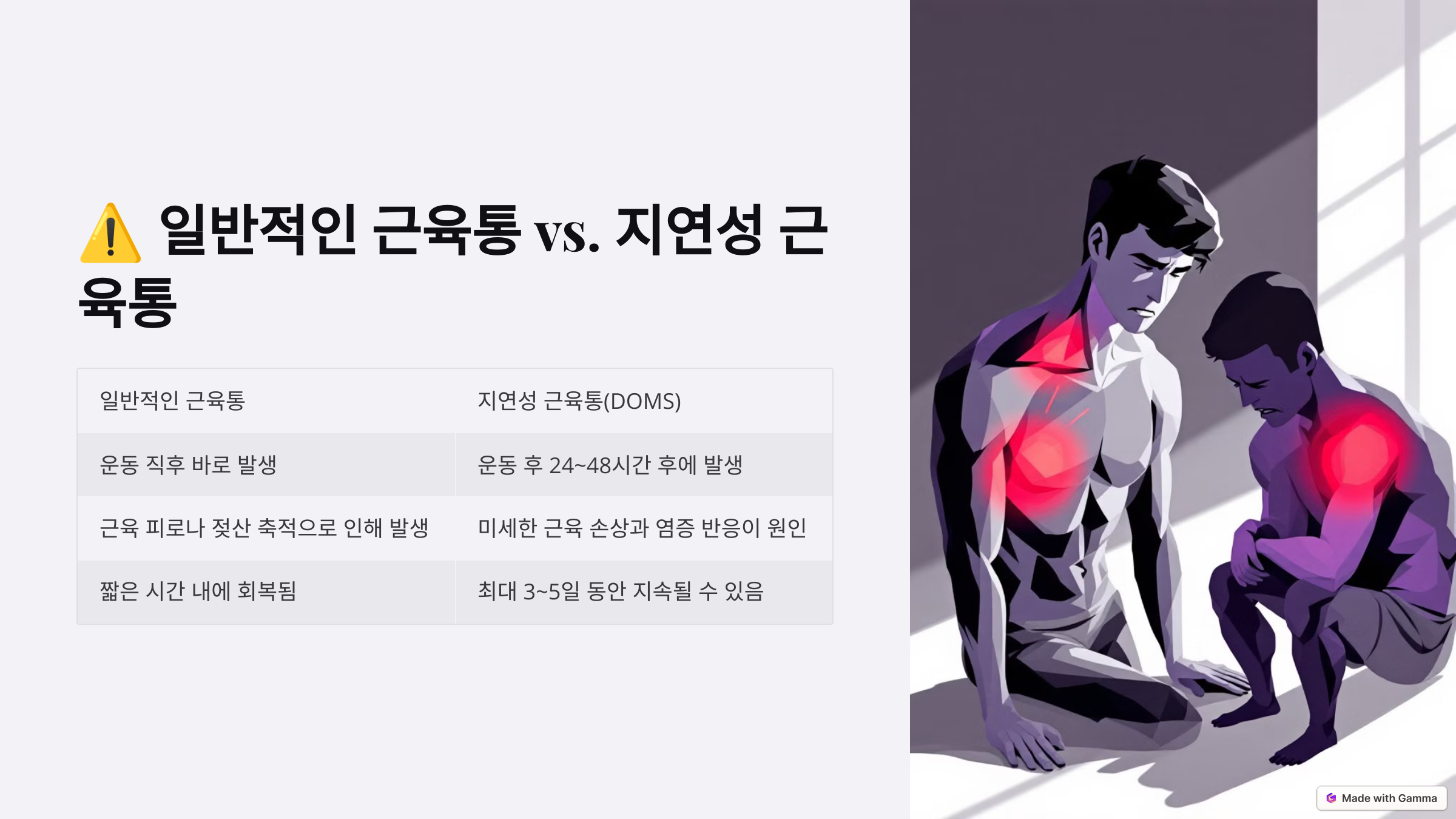 ⚠ 일반적인 근육통 vs. 지연성 근육통
